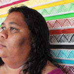 Debbie is the daughter of Florence Puruntatameri- Coombes and Graeme Coombes. Her mother is a Tiwi woman from Pirlangimpi Community on Melville Island. Her father originated from Queenstown, New Zealand but married Florence as a young man and called Pirlangimpi home for over 30 years. He raised Debbie and her siblings (including sister and fellow artist, Karina Coombes) on the islands. Debbie lived and worked in Darwin for over four years, returning home to live in the Tiwi Islands in 2011. From this point Debbie painted under the direction of her grandfather, Justin Puruntatameri and her mother, Florence (Justin’s eldest daughter). Justin in particular was able to give Debbie invaluable advice on what she could correctly portray as defined by her Tiwi family ties.