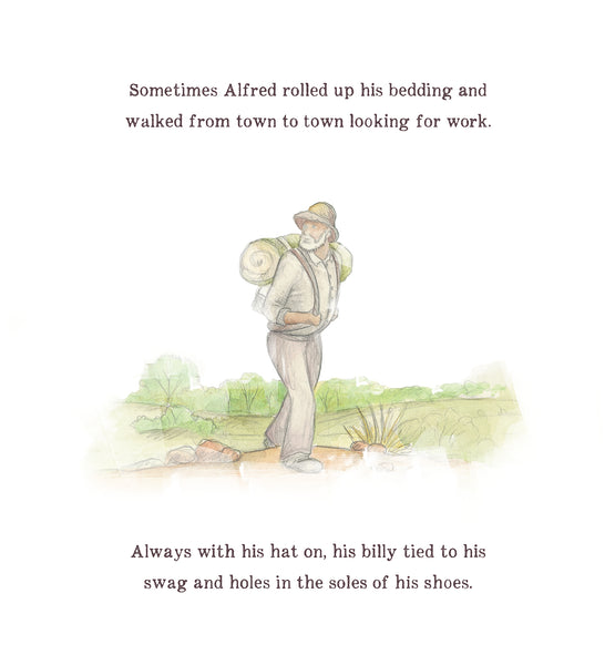 Alfred’s War is a powerful story that unmasks the lack of recognition given to Australian Indigenous servicemen who returned from the WWI battlelines. Alfred was just a young man when he was injured and shipped home from France. Neither honoured as a returned soldier or offered government support afforded to non-Indigenous servicemen, Alfred took up a solitary life walking the back roads – billy tied to his swag, finding work where he could.