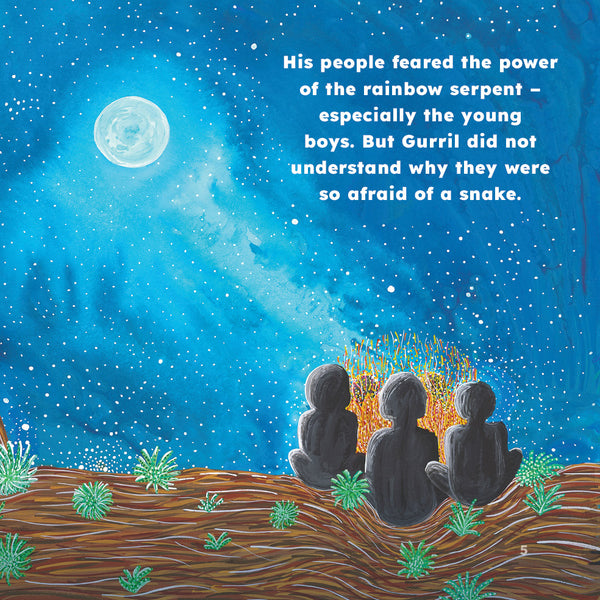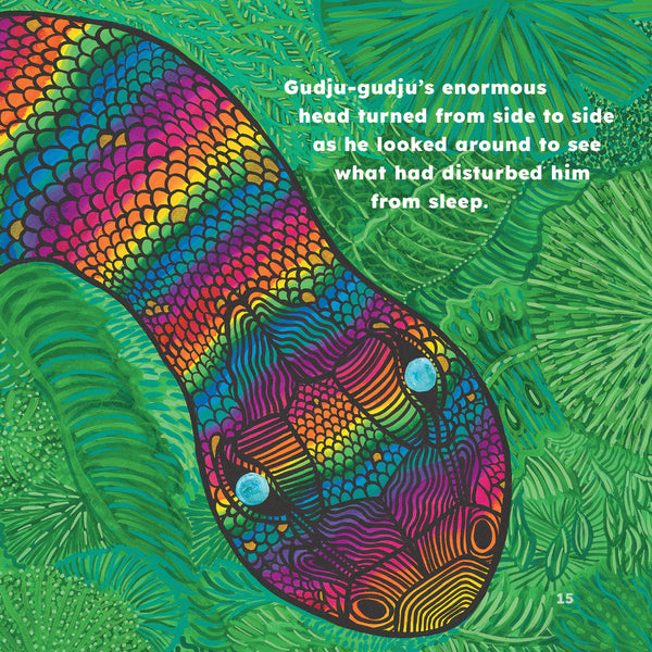 Gurril could not understand why everyone was afraid of a snake, even if it was Gudju-gudju, the rainbow serpent! But he was soon to discover just how powerful Gudju-gudju really was and why it is not a good idea to torment the rainbow serpent.