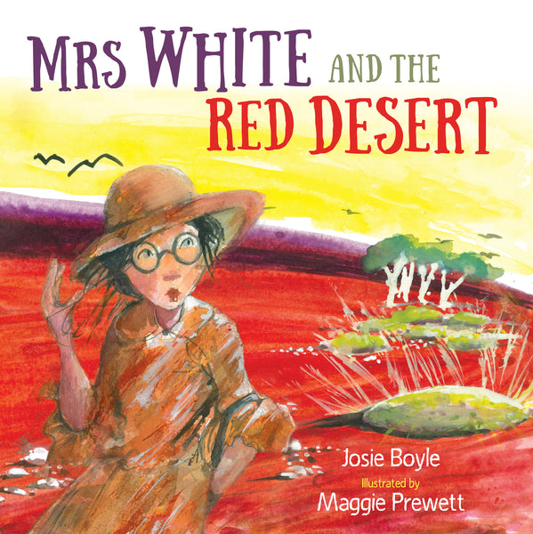 When a group of desert children invite their school teacher, Mrs White, home for dinner to show her why their homework is always grubby, no-one expects what is to come! They are happily showing Mrs White their higgledy piggledy garden when suddenly a big red sand storm comes billowing over the hill. Sand and spinifex whips at their legs and flies at their heads. They can hardly see through the storm. They hurry back home, only to discover that everything is now red. Their lovely clean house is covered in red dust. The beds are red. The washing on the line is red. The table is red. Their delicious dinner is red and ruined. And Mrs White’s clean white dress has turned into a dusty red dress. Now Mrs White finally knows why the children’s homework is always so grubby!