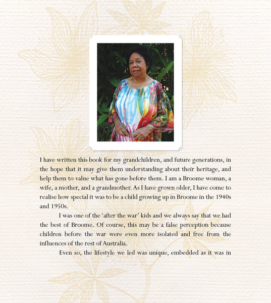 In this montage of memoir, art, silk paintings and photographs, Sally Bin Demin remembers her childhood growing up in Broome during the 1940s and 50s. As one of the ‘after the war kids', Sally's lifestyle was embedded in the many cultural traditions of the people who lived in the old pearling town. She had the world at her doorstep.