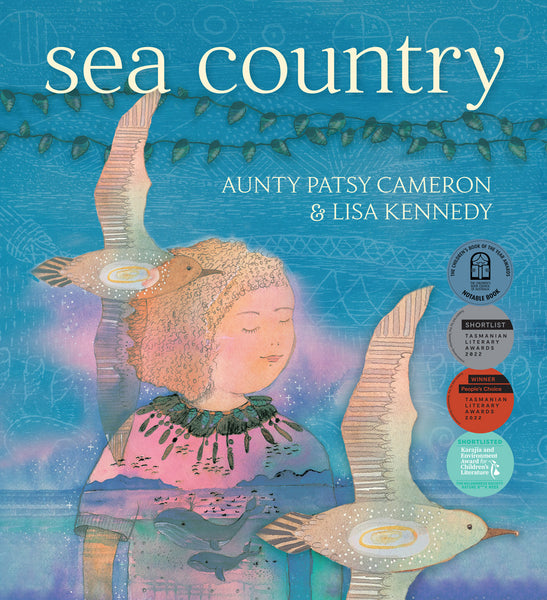 In this delightful children’s picture book, Aunty Patsy Cameron generously shares the stories and traditions from her family’s seasonal island life in Tasmania. With evocative text and stunning illustrations, Sea Country lets the reader know when to pick ripe wild cherries, when the moon (mutton) birds fly home and how the nautilus shells smell like the deepest oceans.