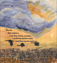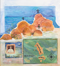 Aunty Patsy Cameron, who is a descendant of the Pairebeenne Trawlwoolway clan in Tasmania, weaves a cultural homage to life on Flinder’s Island, with stories of collecting shells, fishing in wooden dinghies with long oars, and watching clouds snake their way down Mt Munro. Alongside this tender story, Lisa Kennedy reveals the love and connection to sea and Country through her intricate collages and delicate illustrations that sing country alive.