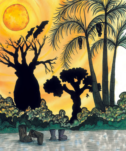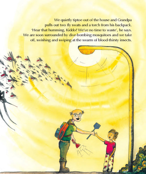 The adventure of a girl and her grandfather who sneak out at night to climb the staircase to the moon. They brave bloodthirsty mosquitoes, dive-bombing bats, giant boab trees and sinking mangrove mud before making it to the foot of the staircase. They climb the steps and leap like acrobats on the moon’s surface. Based on a natural phenomenon occurring in Broome in Australia’s north west. As the full moon rises, it reflects across the mudflats creating the illusion of a staircase.