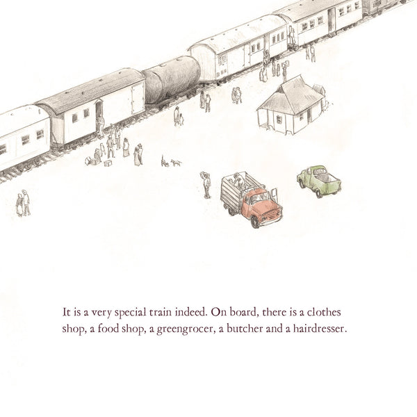 Paul Seden’s evocative illustrations effortlessly capture a bygone era, rendering the past with a deep sense of nostalgia, whilst capturing its uncluttered beauty. The Shop Train was inspired by similar journeys author Josie Wowolla Boyle took as a young girl. It was these journeys that left unforgettable memories on Josie, no matter how young or old she may have been.
