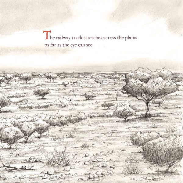 “Boyle captures the experience of driving the long, rough terrain to reach the train line with her mother, and the excitement and bustle of people gathering their weekly supplies...The light and innocent tones of these very uncomplicated memories are complemented by the high-energy movement illustrated in the figures and a nostalgic sepia-toned palette that evokes the dry bush of remote Australia.”