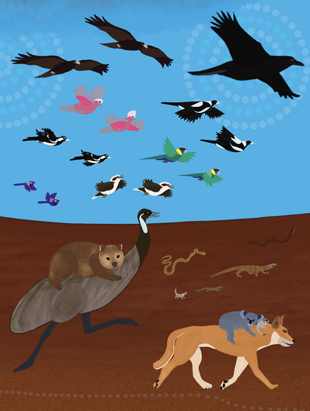 'Tales from the Bush Mob' is a series of books about the Bush Mob, a group of animals that works together to solve problems. A rich landscape of characters and places populate this series and include Platypus, Koala, Emu, Wombat, Kookaburra, Echidna, Kangaroo and Gusto, the wind. Places include Willy Wagtail’s Tree, Dingo’s Den, Old Billabong, Bird Meeting Place, Cockatoo’s Nesting Trees, Top Camp and Emu Race Track.