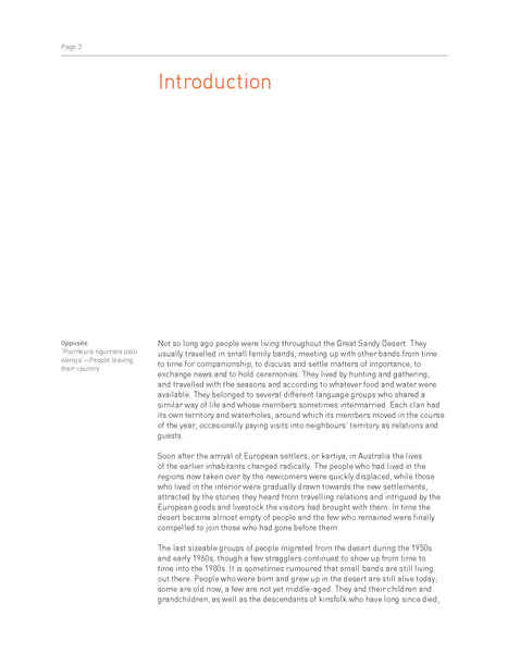 For several years, English woman Pat Lowe shared a camp with her lifetime partner, Walmajarri man Jimmy Pike. Their camp faced south into the Great Sandy Desert where Jimmy was born. While spending time in the red heart of country that had been home to the Walmajarri people for thousands of years, they recorded Pike’s stories through his painting and Lowe’s writing. With Jimmy Pike as her teacher, Pat Lowe explored the day-to-day lives of the desert dwellers.